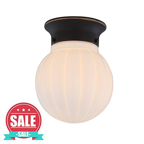 【SALE】Bronze Finish ceiling light fixture with White Ribbed Glass Globe 1-Light Ceiling Flush Mount, LED Support Lamp WISBEAM