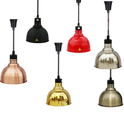 250mm Commercial Food Pendent Lamp Food Warmer Retractable Food Heat Lamp for Buffet Food Court Restaurant 110V/220V (silver)