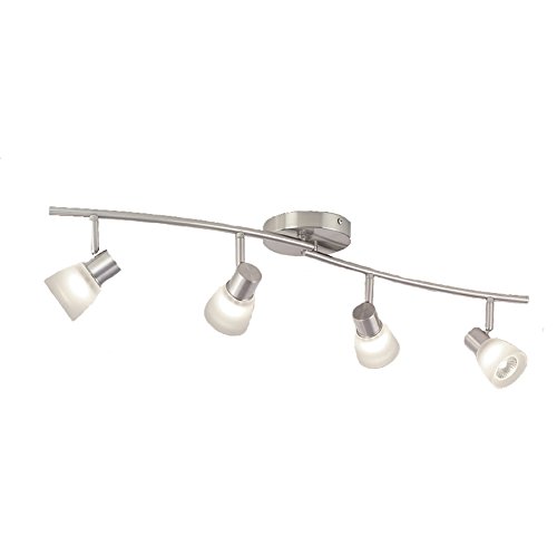 Brushed-nickel finish with frosted glass shades Adjustable heads provide task and ambient lighting GU-10 50-watt bulbs included Can be mounted on flat or slant ceilings Compatible with standard 120-volt incandescent style dimmer switches