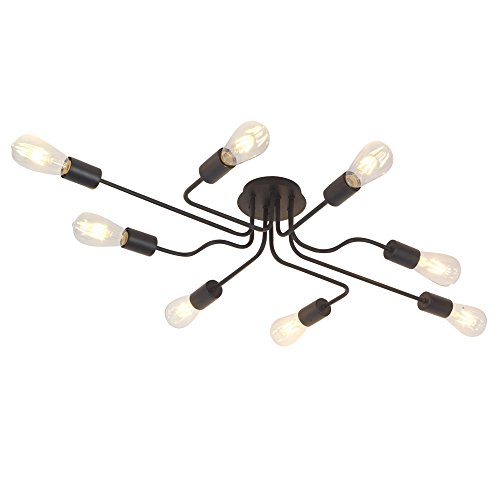 8-Lights Sputnik Chandelier Black Semi Flush Mount Ceiling Light Industrial Vintage Metal Art Pendant Lighting for Living Room Dining Room Kitchen Hallway Cafe Bar by VINLUZ