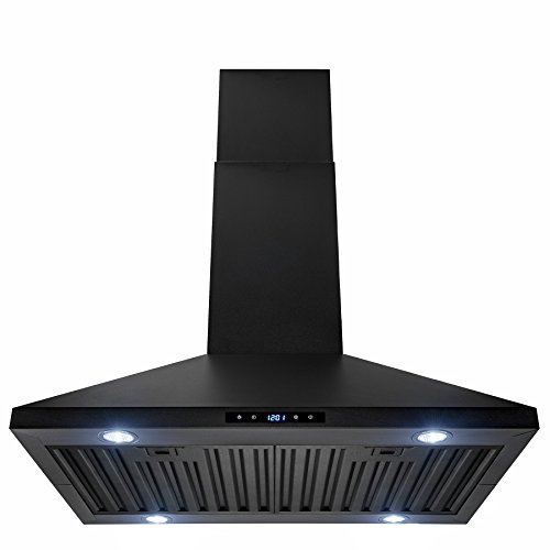 AKDY 30″ Island Mount Black Finish Stainless Steel Touch Panel Kitchen Range Hood Cooking Fan