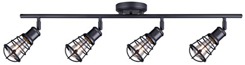 Canarm ltd IT611A04GPH style Otto 4 light track rail Graphite with metal cage shades – the Otto Collection features an innovative combination of industrial and vintage elements. Featuring a dark, Graphite finish the design makes a bold statement. The metal, cage style shades showcase filament bulbs. This bold look would be perfect for loft apartment, refurbished Warehouse, office, den, library or bedroom. Otto is available in a variety of fixture types; chandelier, single and 5 light cord pendants, ceiling/wall light, 2, 3, or 4 light track rails and even a 52-inch ceiling Fan. Except cord pendants, light heads are adjustable which allows for targeted illumination. Make your lighting solution the Otto Collection. This Otto track rail features the easy connect push-in connection system for easy installation and uses 4 – 60W type a bulbs (not included). canarm has a long and successful history of supplying lighting and ceiling fans. They work diligently to create a comprehensive selection of styles and designs as well as maintaining high standards of product quality and value.