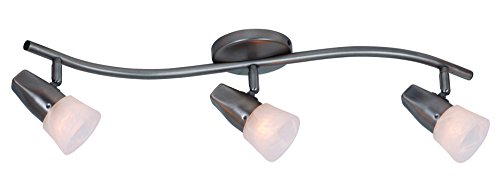 Furnish your ceiling with distinct illumination. Featuring fully adjustable track heads, made in a brushed pewter metal finish, the 3Light Track Lighting Kit 19209000 rewards your residence with modern style. Each light on the Sshaped bar is housed by an alabaster glass shade, adjustable for optimal directional lighting. The canopy mounts to any standard ceiling or wall junction box. Updating the light fixtures in your home is the most effective way to accomplish an alluring, yet simple, DIY remodel. Producing captivating fixtures for nearly five decades, Catalina Lighting extends a 1year limited warranty against defects in materials and workmanship.