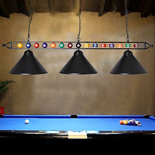 Chende 59” Hanging Pool Table Light Fixture for Game Room Beer Party, Ball Design Metal Billiards Light with 3 Lamp Shades , Suitable for 7′ or 8′ Tables (Black)