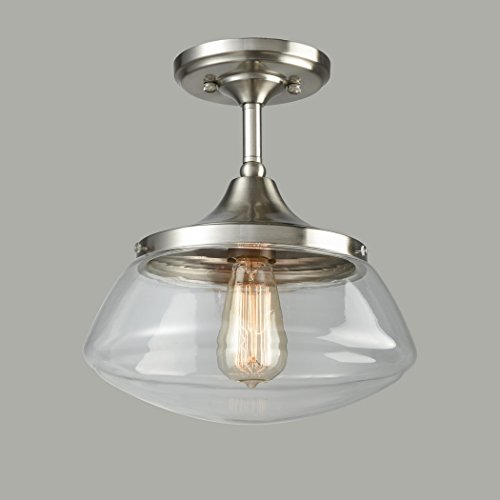 CLAXY Ecopower Vintage Brushed Nickel Glass Ceiling Light 1-Light Pendant Lighting