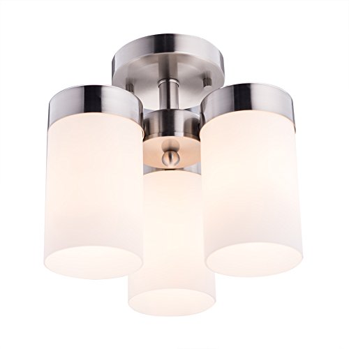 CO-Z 3-light Semi Flush Mount Nickel Finish Mini Chandelier, Ceiling Light Fixture with Satin Etched Cased Opal Glass Shade
