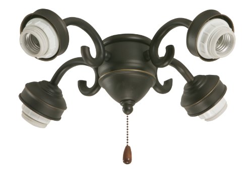 This Emerson 4-Light Transitional Fitter in Oil Rubbed Bronze features stylish curved details to complement the fitter’s traditional design. Easy to install, this ceiling fan light fitter is 13-1/2-inches wide by 6-1/2-inches high and includes 4, 13-watt medium base compact fluorescent bulbs. This fitter gives you more options to customize your Emerson ceiling fan; simply match your favorite fitter with one of our glass selections for a personalized look (glass sold separately).