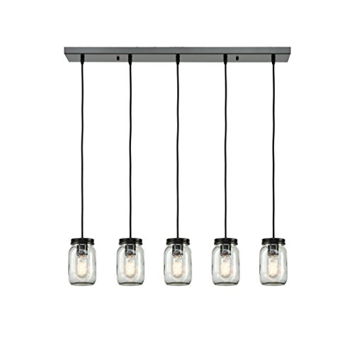 EUL Mason Jar Light Fixture 5-Light Linear Chandelier Glass Hanging Pendant Lights Oil Rubbed Bronze Island Lighting