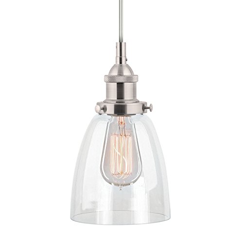 - SHADE DIMENSIONS – 5-1/2″ diameter x 6″ high clear glass shade reveals bulb