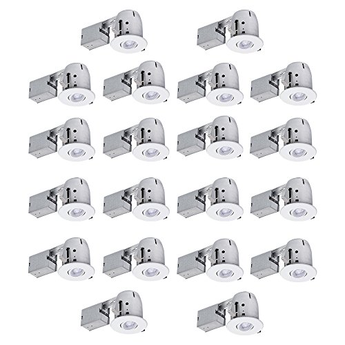 Globe Electric’s 20-pack 4″ Round Trim Recessed Lighting Kit is the perfect way to brighten up the interior of your home or business with style. Turn your recessed lighting green by using LED bulbs. Featuring patented PUSH-N-CLICK clips which are fully adjustable and extra wide to grip uneven surfaces and provides for easy tool-free installation. Swivel gimbal gives you the ability to focus light on specific areas and can be directed for any desired look. An integrated cut-off switch ensures that the fixture will not overheat and can be used with or without an insulation box. Dimmable with a compatible dimmer switch (not included). Requires twenty 50-watt equivalent GU10 MR16 light bulbs (sold separately). Cut a 3.88-inch hole for this item.