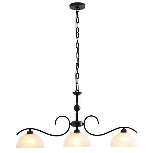 Horisun 3 Lights Handing Pendant Lighting with Glass Shade Elegant Indoor Island Pendant Lamp Retro Chandelier for Dining Room, Kitchen Island