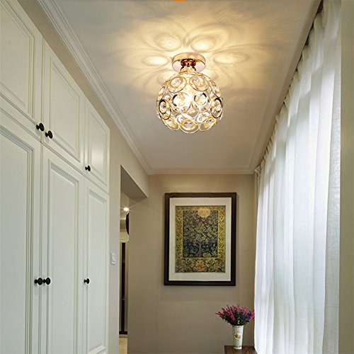 - This ceiling light is a modern style, the gold finish and crystal latticed shade perfectly filter in the room,Use it in aisle,corridor,fitting room,Creative to create a romantic atmosphere.