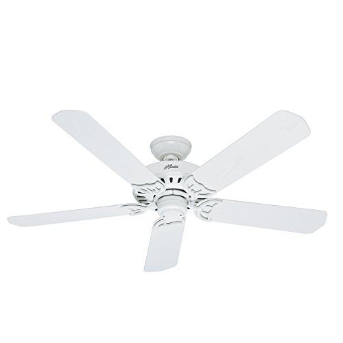 Hunter 53125 Bridgeport 52-Inch ETL Damp Listed Ceiling Fan with Five White Plastic Blades, White