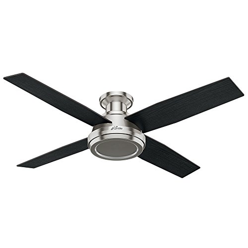 Hunter 59247 Dempsey Low Profile Brushed Nickel Ceiling Fan With Remote, 52″
