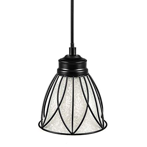 Industrial Antique Hanging Pendant Lights with Wrought Iron Metal Shade,Glass Lampshade, Black Finish (E27 Base)