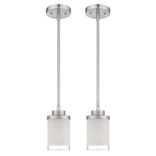 Jazava Modern Mini 1-Light Pendant, 2Pack Industrial Hanging Ceiling Light Fixture, Adjustable Length, Brushed Nickel Finish with White Linen Frosted and Clear Glass Shades