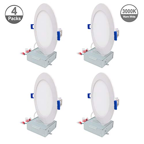JULLISON LED 6 Inch Recessed Low Profile Slim Panel Light with Junction Box, IC Rated Air Tight, 12W, 800 Lumens, 3000K Warm White, CRI80+, Dimmable, Damp Location, ETL + Energy Star (4 Packs)