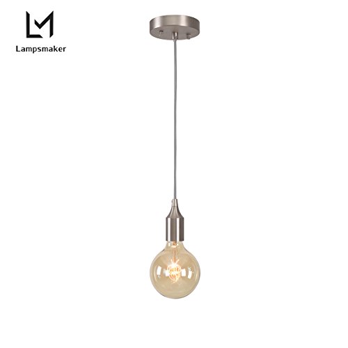 Lampsmaker E26 Light Socket Vintage Ceiling Hanging Light Fixtures,Mental Base Pendant Kit Textile Cord Lamp Holder With Home(Not Bulb) 82847POL-AMA (Sand nickel)
