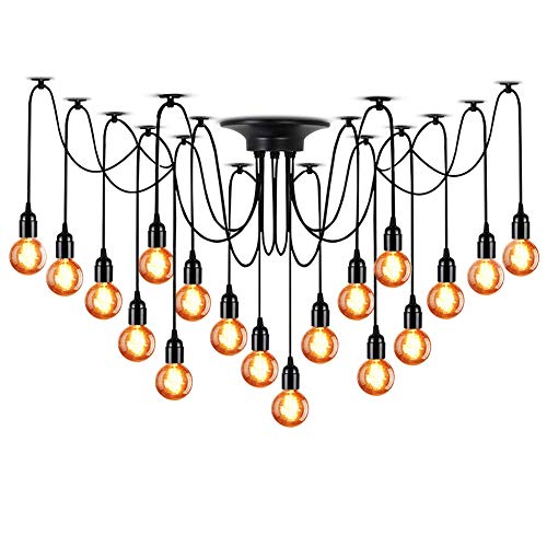 LAMPUNDIT 18-Light Chandelier, Adjustable DIY Ceiling Spider Pendant Lighting, Industrial Hanging Light Fixture (Each with 6ft Wire)
