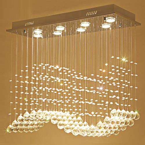 Moooni Modern Rectangular Crystal Chandelier Lighting Wave Raindrop Pendent Flush Mount Ceiling Light Fixture for Dining Room L31.5″ x W11.8″ x H27.6″