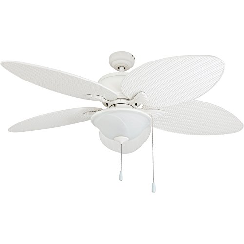 - ETL DAMP-RATED: This ceiling fan is damp rated and can be installed outdoors. Five white ABS plastic blades will not wilt in the weather.