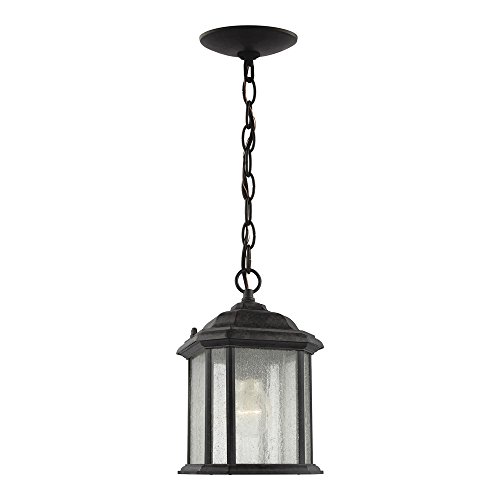 Sea Gull Lighting 60029-746 Kent One-Light Outdoor Semi-Flush Convertible Pendant with Clear Seeded Glass Panels, Oxford Bronze Finish