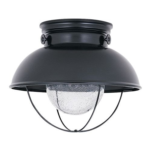 Sea Gull Lighting 886991S-12 Sebring LED Outdoor Ceiling Flush Mount with Clear Seeded Glass Diffuser, Black Finish