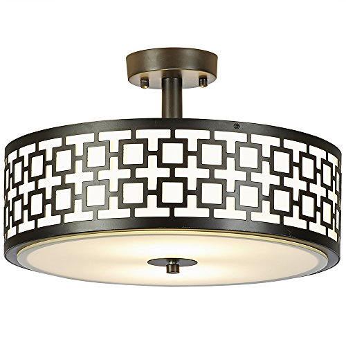 SOTTAE Luxurious 2 Lights Glass Diffuser Black Finish Living Room Bedroom Ceiling Light,Ceiling Lamp Fixture(Diameter:15.74″)