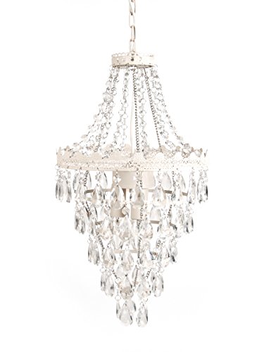 Dozens of sparkling, faceted, faux-crystal teardrops and beads hang from multiple antique-style white filigreed rings. Use in any room of your home to add a glamorous feminine touch of light. Need to be professionally installed by a licensed electrician. One 25-watt (E26) candelabra bulb required. UL listed & certified.