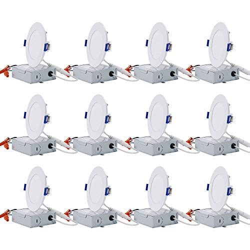 TORCHSTAR 10W 4″ Ultra-Thin Recessed Ceiling Light with Junction Box, 3000K Warm White Wafer Light, Dimmable Downlight, 650lm 80W Equivalent ETL and Energy Star Certified, Pack of 12