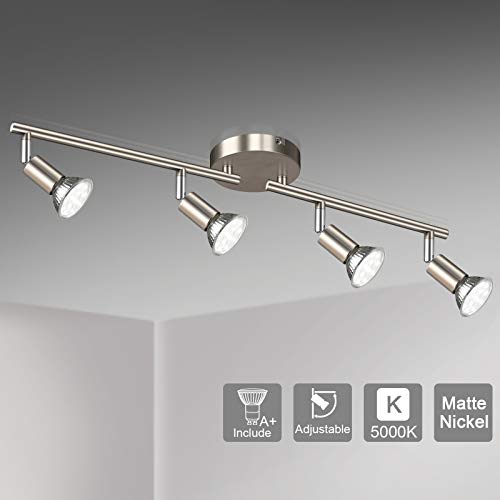 Unicozin LED 4 Light Track Lighting Kit, Matte Nickel 4 Way Ceiling Spot Lighting, Flexibly Rotatable Light Head, Modern Track Light Included 4 x LED GU10 Bulb (4W, Daylight White 5000K, 400LM)