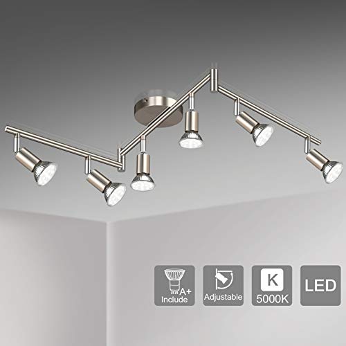 Unicozin LED 6 Light Track Lighting Kit, Matte Nickel 6 Way Ceiling Spot Lighting, Flexibly Rotatable Light Head, Modern Track Light Included 6 x LED GU10 Bulb (4W, Daylight White 5000K, 400LM)