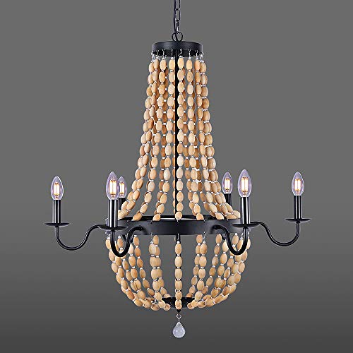 - Wood Beaded Chandelier: The perfect blend of styles, wooden beads add a natural touch to this chandelier, and the iron frame adds a touch of modern and industrial style, perfect fit of your furniture