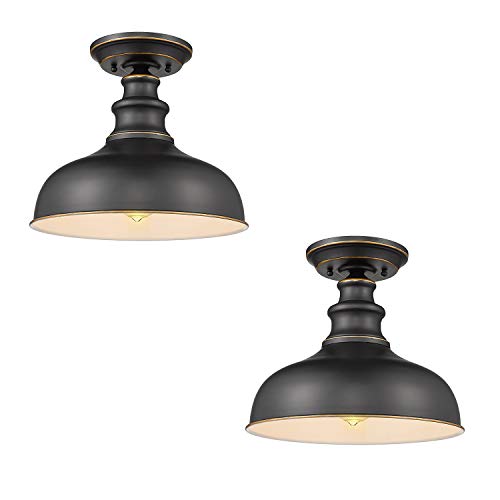 Zeyu Vintage Semi Flush Mount Ceiling Light 2 Pack, Indoor Industrial Semi-Flush Ceiling Lamp in Rubbed Oil Bronze Finish, 02A391-2PK ROB
